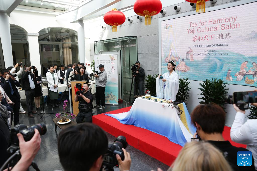 BRUSSELS, May 4 (Xinhua) -- A cultural salon focusing on traditional Chinese tea making techniques and social practices will open to the public on Friday after an opening ceremony held Thursday at the China Cultural Center in Brussels.
