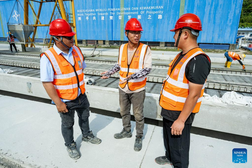 KUALA LUMPUR, May 4 (Xinhua) -- Under the scorching sun in Malaysia, the construction work of the East Coast Rail Link (ECRL), a major infrastructure project under the Belt and Road Initiative (BRI), was in full swing.