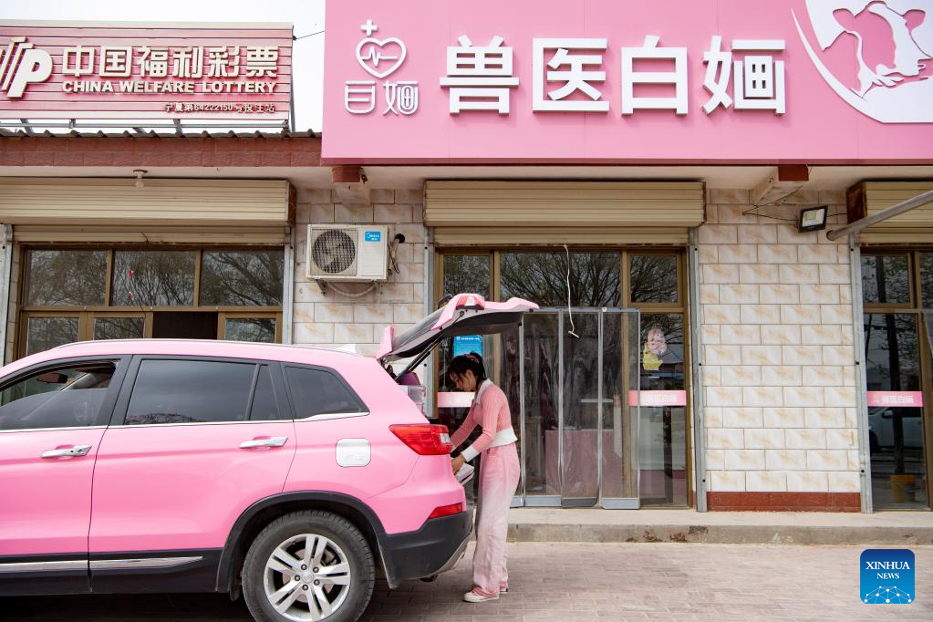 Veterinarian Bai Hua arranges medicines in her veterinary clinic in Yuanzhou District, Guyuan, northwest China's Ningxia Hui Autonomous Region, April 18, 2023. (Xinhua/Feng Kaihua)