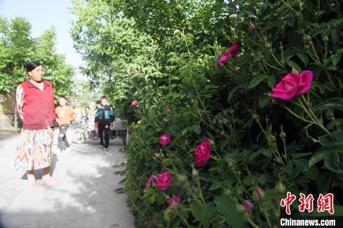 Photo shows roses in Meigui village, Kashgar city, northwest China's Xinjiang Uygur Autonomous Region. (Photo/Sun Tingwen)