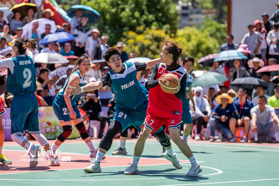 Players compete in a basketball game in Yemachuan township, Hezhang county, Bijie city, southwest China's Guizhou Province, May 3, 2023. (vip.people.com.cn/Luo Dafu)