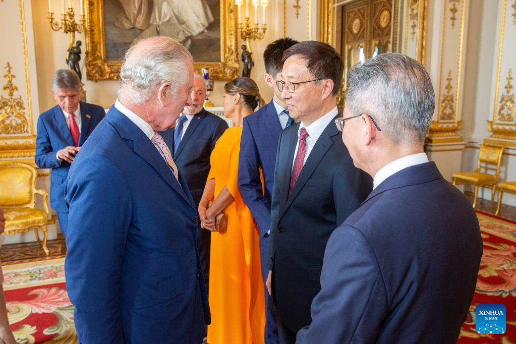 Han, who is also Chinese President Xi Jinping's special representative, conveyed to King Charles III President Xi's sincere congratulations and best wishes to the King and Queen Camilla, the British royal family and the British people, and thanked the British side for its thoughtful arrangements for his visit to the country.