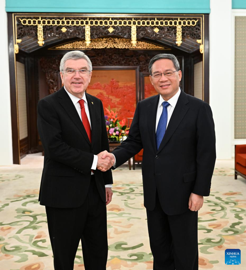 BEIJING, May 6 (Xinhua) -- Chinese Premier Li Qiang met with visiting International Olympic Committee (IOC) president Thomas Bach in Beijing on Saturday.