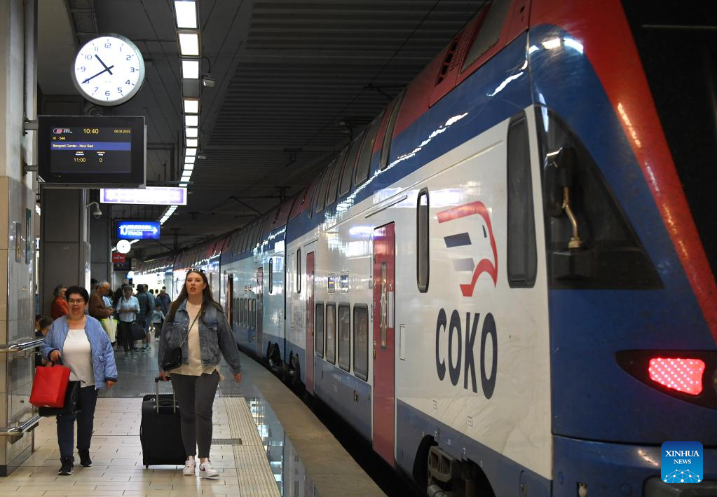 A train is to leave Novi Sad station for Belgrade, Serbia, May 6, 2023. The 80-kilometer-long, Chinese-built Belgrade-Novi Sad high-speed railway has been carrying passengers at speeds of up to 200 kilometers per hour since March 2022. (Xinhua/Ren Pengfei)