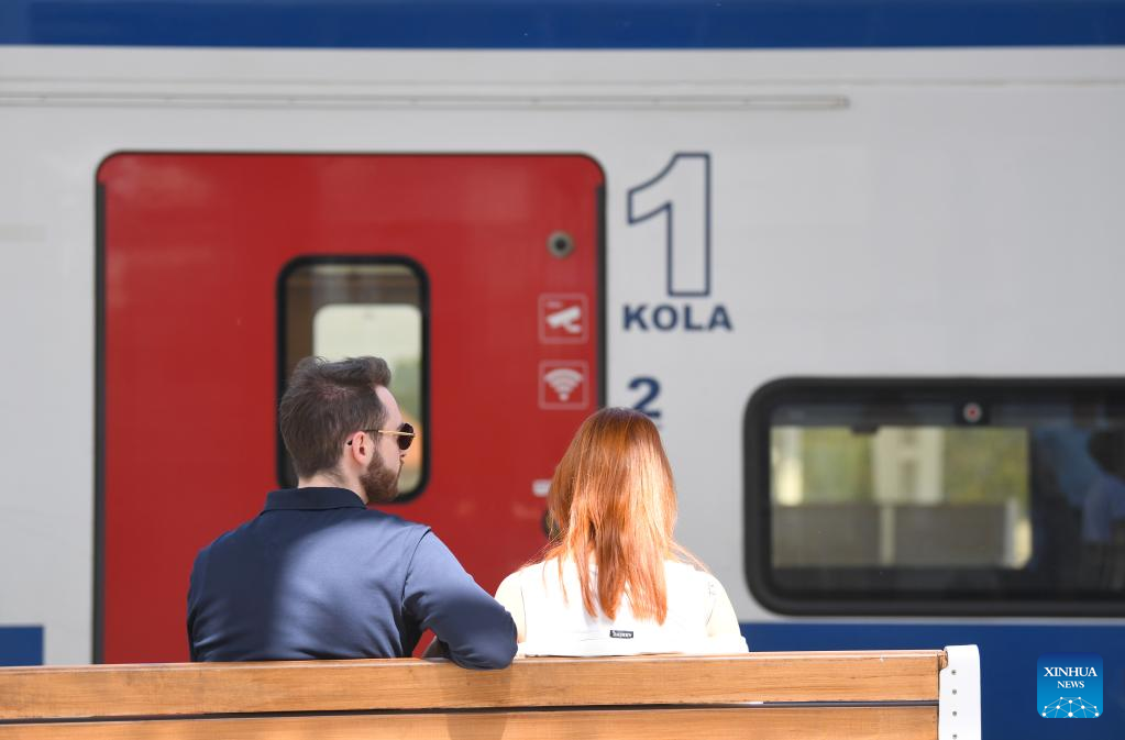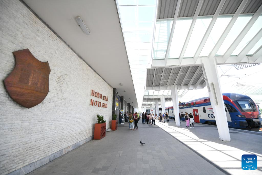 Passengers wait at Novi Sad station in Serbia, May 6, 2023. The 80-kilometer-long, Chinese-built Belgrade-Novi Sad high-speed railway has been carrying passengers at speeds of up to 200 kilometers per hour since March 2022. (Xinhua/Ren Pengfei)