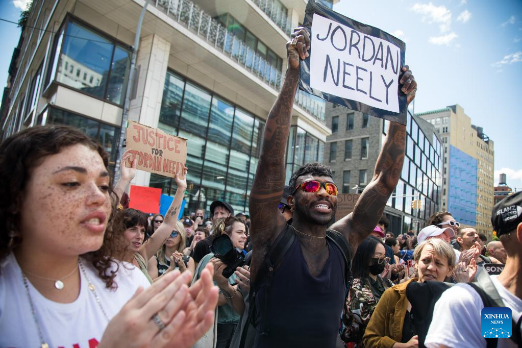 NEW YORK, May 6 (Xinhua) -- Demonstrations went on in New York City on Saturday, five days after 30-year-old black man Jordan Neely was allegedly choked to death by 24-year-old white U.S. marine veteran Daniel Penny on a subway in the city.