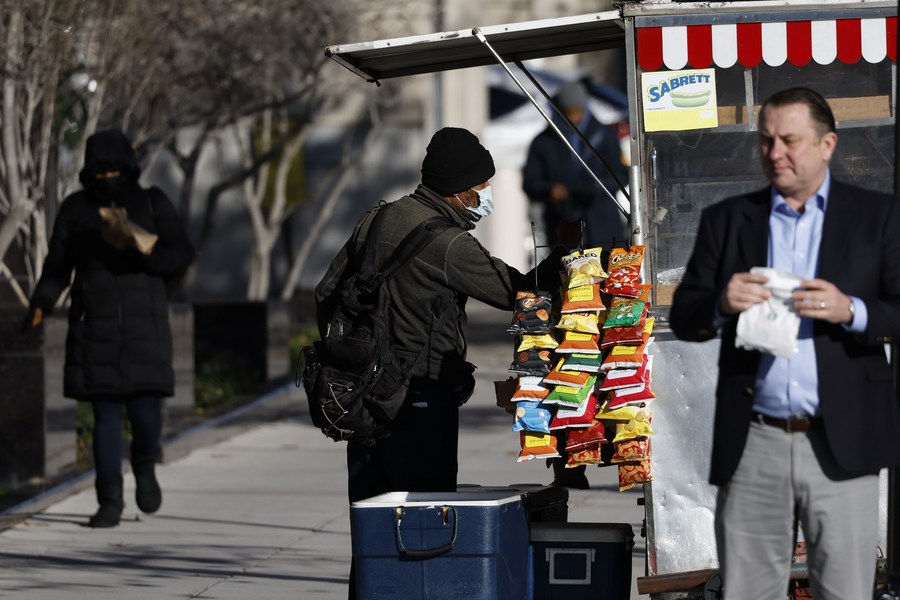 A man wearing a face mask is seen on a street in Washington, D.C., the United States, on Dec. 16, 2022. (Photo by Ting Shen/Xinhua)