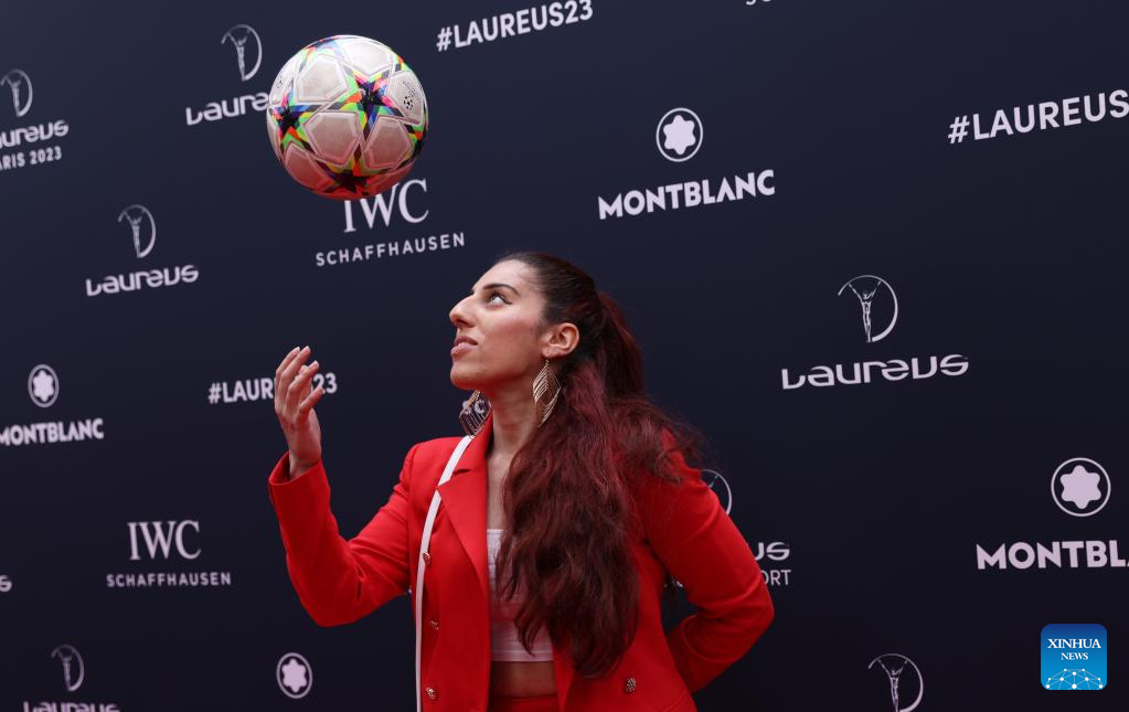 Freestyle football player Lisa Zimouche arrives at the red carpet prior to the 2023 Laureus World Sports Awards ceremony in Paris France, May 8, 2023. (Xinhua/Gao Jing)