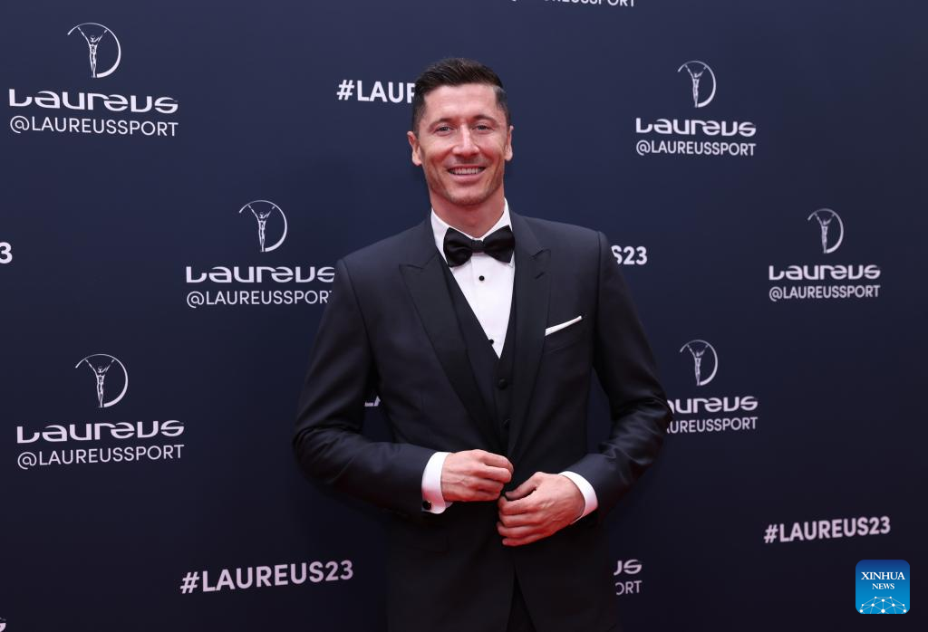 Polish football player Robert Lewandowski arrives at the red carpet prior to the 2023 Laureus World Sports Awards ceremony in Paris France, May 8, 2023. (Xinhua/Gao Jing)