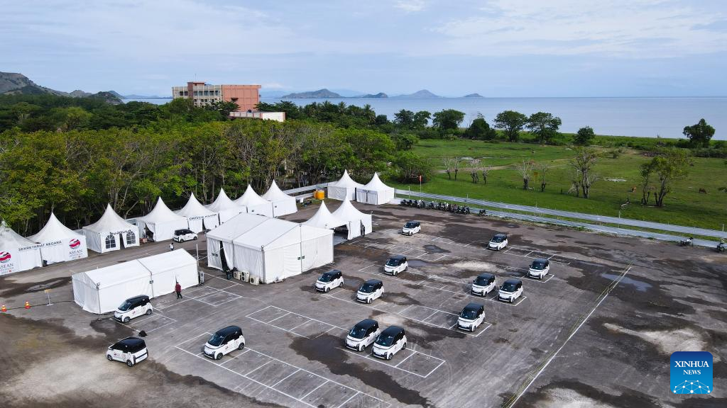 This photo taken on May 9, 2023 shows Wuling Air electric vehicles at the camp of Wuling Motors Indonesia for the 42nd ASEAN Summit in Labuan Bajo, East Nusa Tenggara province, Indonesia. Wuling is here to provide commuter service for delegations to the summit on May 9-11. (Xinhua/Xu Qin)