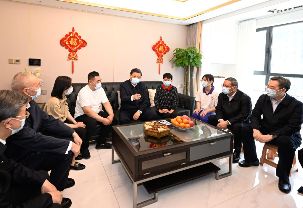 Chinese President Xi Jinping, also general secretary of the Communist Party of China Central Committee and chairman of the Central Military Commission, visits the home of relocated resident Li Jinghe at a residential community in Rongdong District of the Xiong'an New Area, north China's Hebei Province, May 10, 2023. Xi on Wednesday inspected Xiong'an in north China's Hebei Province and presided over a meeting on promoting its development. (Xinhua/Li Xueren)