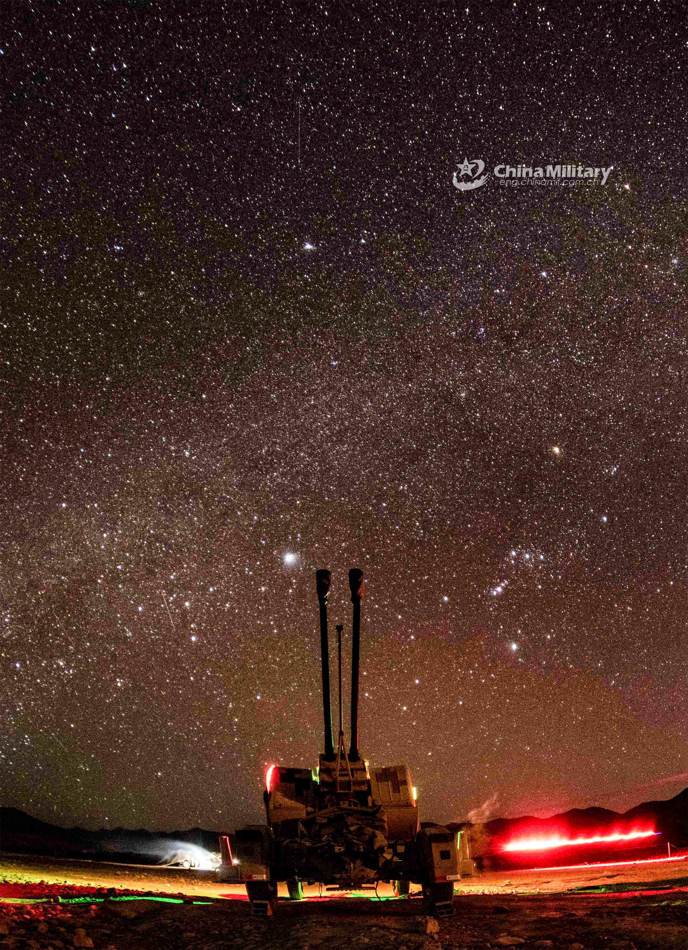 Artillerymen assigned to a brigade under the PLA Xizang Military Command gear up for a recent force-on-force live exercise under a starry night sky. (eng.chinamil.com.cn/Photo by Sun Shilin)
