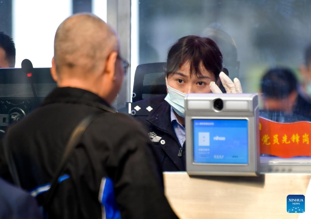 A person queues up for customs clearance at an inspection hall of Horgos, northwest China's Xinjiang Uygur Autonomous Region, May 10, 2023. (Xinhua/Wang Fei)