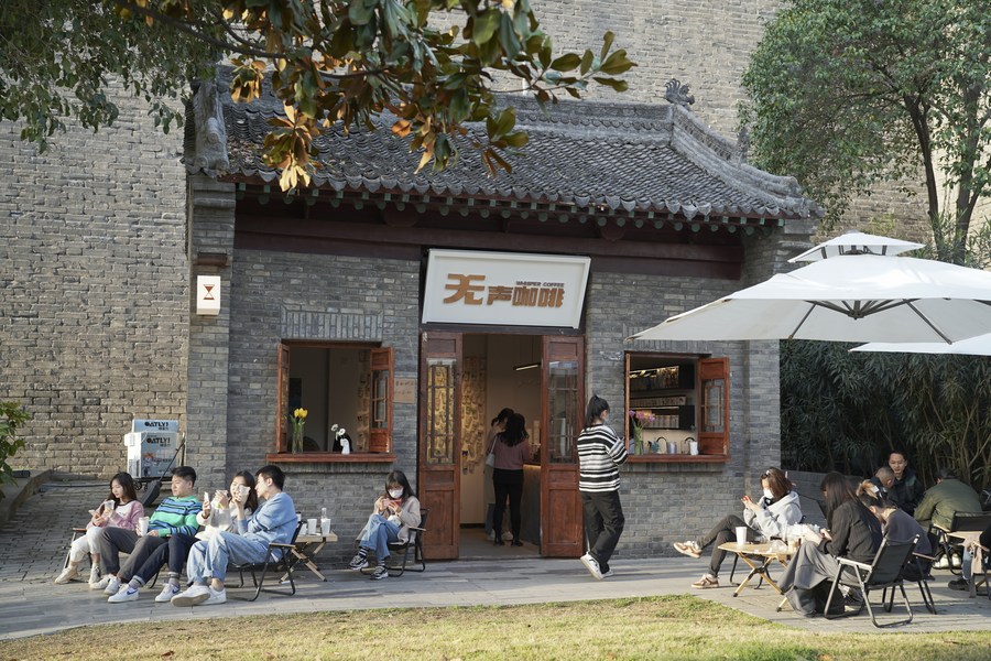 People are seen at a cafe in Xi'an, northwest China's Shaanxi Province, March 25, 2023. (Xinhua/Shao Rui)
