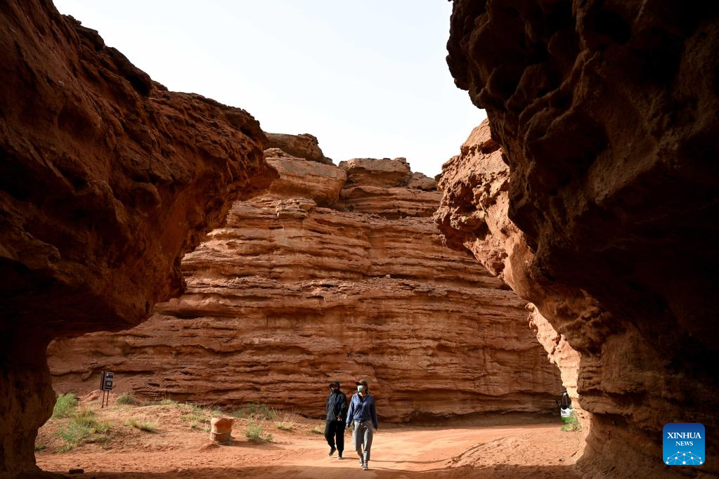 Tourists visit the West Dreamy Canyon in Alxa, north China's Inner Mongolia Autonomous Region, May 13, 2023. (Xinhua/Bei He)