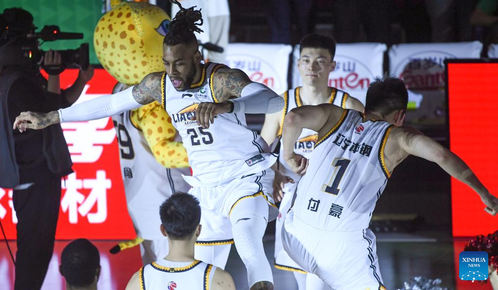 Eric Moreland (L) of Liaoning Flying Leopards is seen before the fourth round final match between Liaoning Flying Leopards and Zhejiang Golden Bulls at the Chinese Basketball Association (CBA) league 2022-2023 season playoffs, in Shenyang, north China's Liaoning Province, May 15, 2023. (Xinhua/Long Lei)