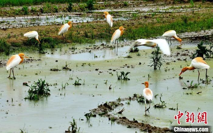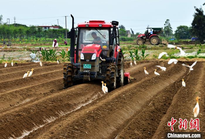 Egrets were seen playing and looking for food near farming machines which were working in fields in Tantou township, Changle district, Fuzhou city, southeast China's Fujian Province, on May 11. Egrets are regular visitors of Fuzhou as the local ecological environment has continuously improved in recent years.