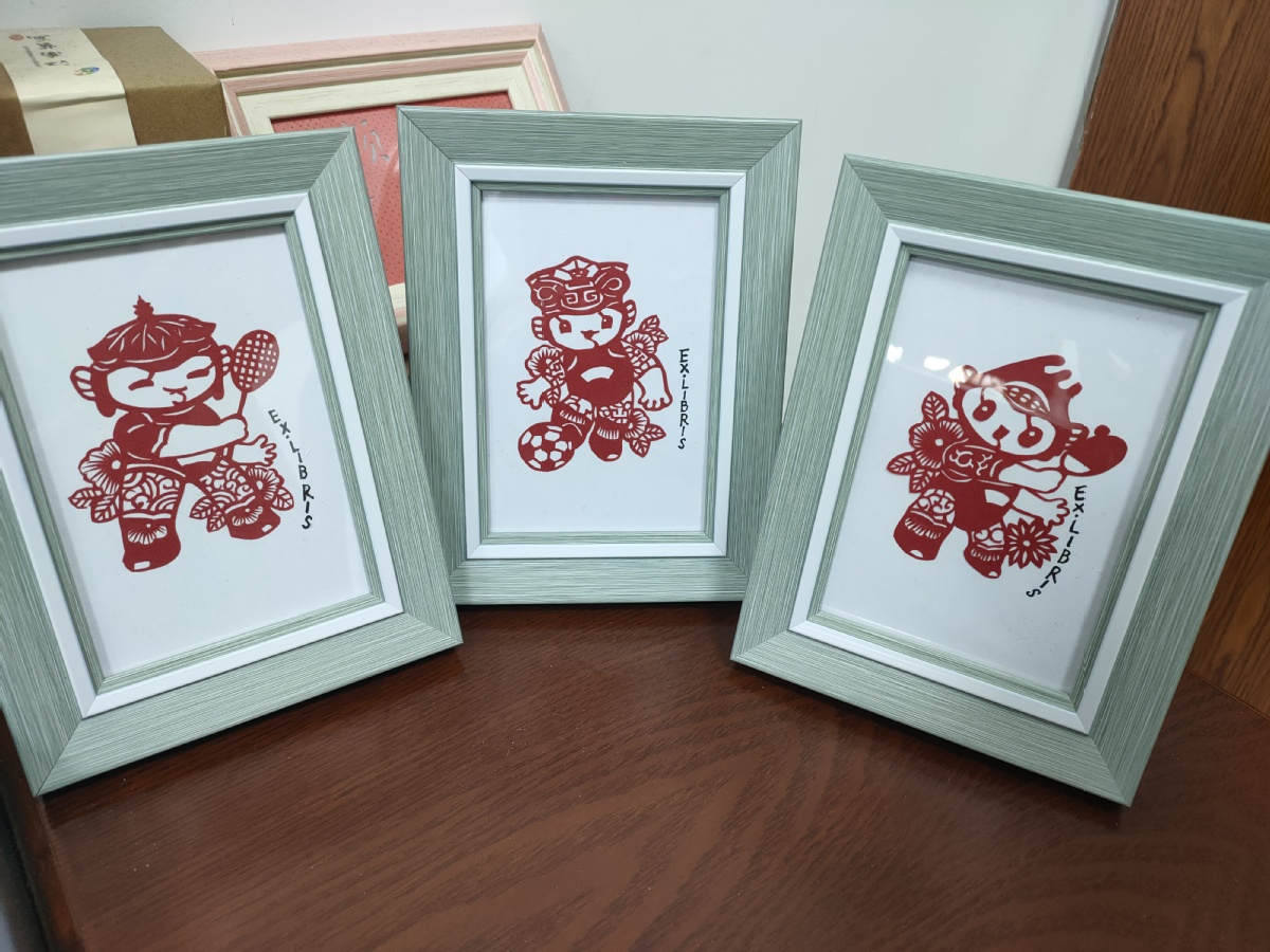 Mascots of the Asian Games appear in paper-cuttings. [Photo provided to chinadaily.com.cn]