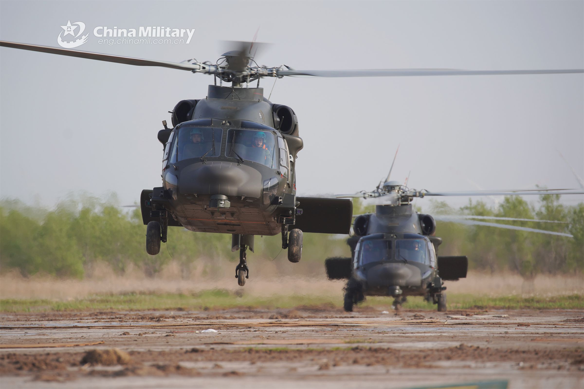 Helicopters attached to an army aviation brigade under the PLA 71st Group Army lift off successively for a recent flight training exercise. (eng.chinamil.com.cn/Photo by Xiang Xu)