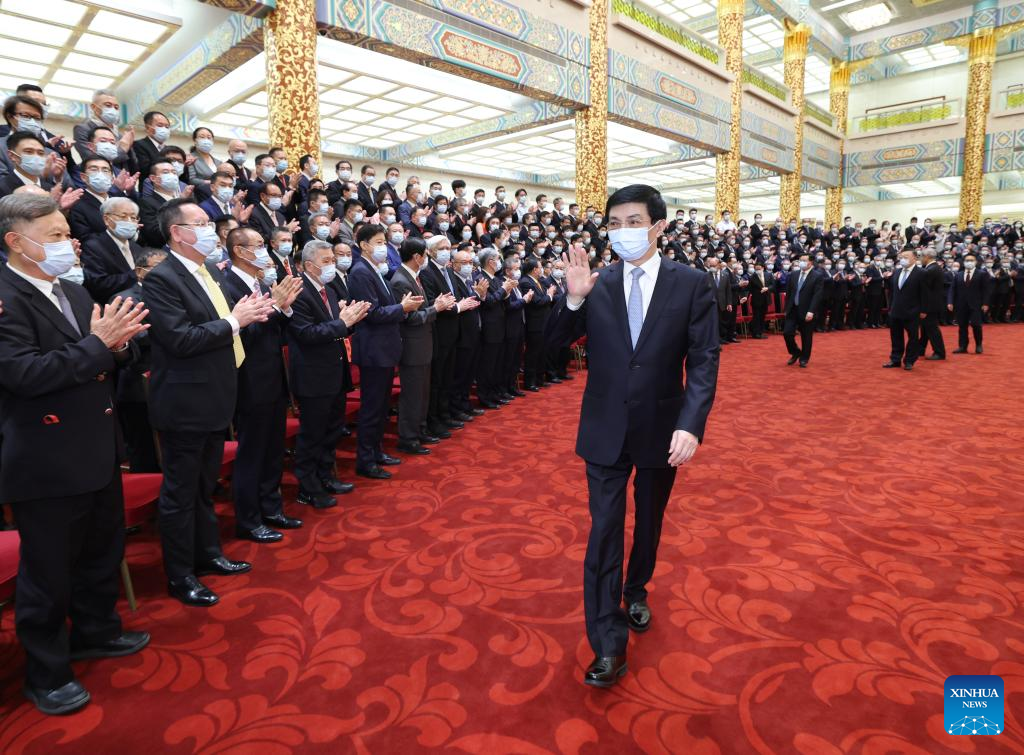 Wang, a member of the Standing Committee of the Political Bureau of the Communist Party of China (CPC) Central Committee and chairman of the National Committee of the Chinese People's Political Consultative Conference, the top political advisory body, took a group photo with the delegates at the Great Hall of the People.