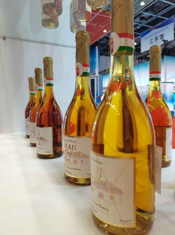 This photo taken on May 16, 2023 shows Hungarian wines at the China-Central & Eastern European Countries (CEEC) Expo in Ningbo, east China's Zhejiang Province. Distinctive commodities from Central and Eastern European countries, especially agricultural food, wines, and dairy products, have drawn wide attention at the expo. (Xinhuanet/Zhang Qian)