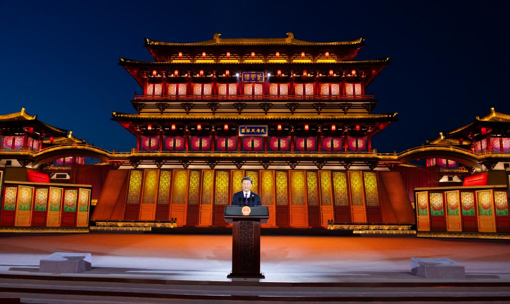 Xi held the banquet for them on Thursday evening in Ziyun Tower, or purple cloud tower in English. Illuminated by red lanterns, the building is located in the Tang Paradise, a complex based on the site of the original relic of an imperial garden dating back to the Tang Dynasty (618-907).