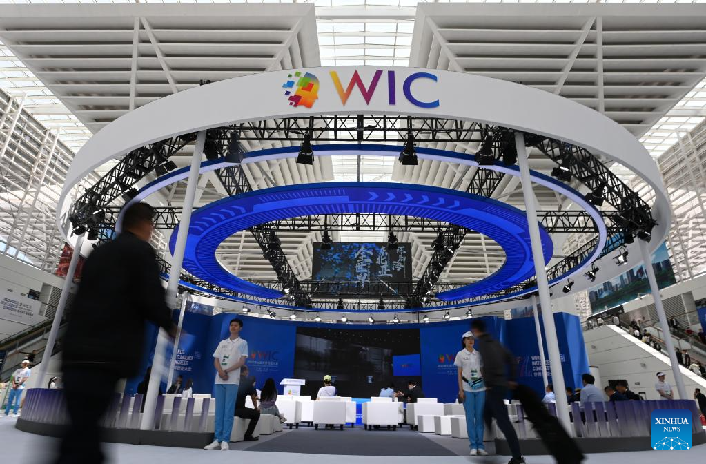 This photo taken on May 18, 2023 shows the opening ceremony of the seventh World Intelligence Congress (WIC) in north China's Tianjin. The seventh WIC, a major AI event in China, kicked off in the northern Tianjin Municipality on Thursday. (Xinhua/Sun Fanyue)