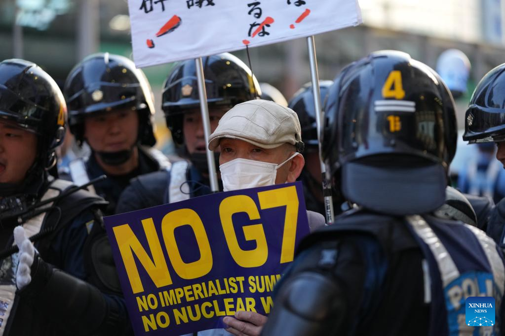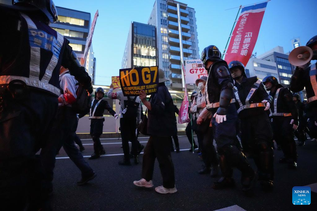 Protesters rally in a protest against the upcoming Group of Seven (G7) summit, in Hiroshima, Japan, May 17, 2023. (Xinhua/Zhang Xiaoyu)