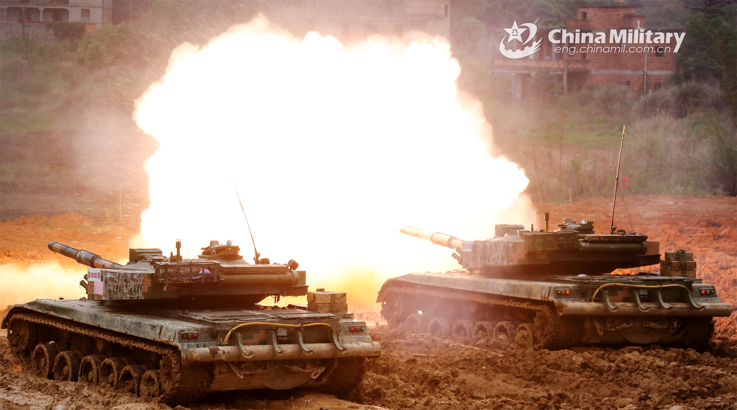 Main battle tanks (MBTs) attached to a brigade under the PLA 72nd Group Army fire at fixed targets during a recent live-fire training exercise. (eng.chinamil.com.cn/Photo by Xiao Yuxuan)