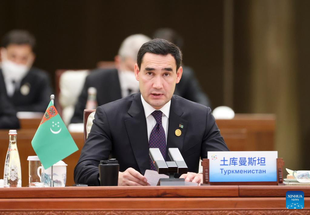 Turkmen President Serdar Berdimuhamedov speaks during the first China-Central Asia Summit in Xi'an, northwest China's Shaanxi Province, May 19, 2023. The first China-Central Asia Summit was successfully concluded here Friday. (Xinhua/Ding Haitao)