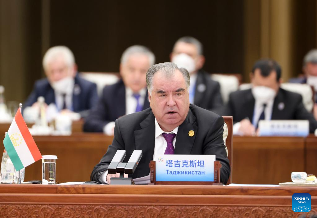 Tajik President Emomali Rahmon speaks during the first China-Central Asia Summit in Xi'an, northwest China's Shaanxi Province, May 19, 2023. The first China-Central Asia Summit was successfully concluded here Friday. (Xinhua/Ding Haitao)