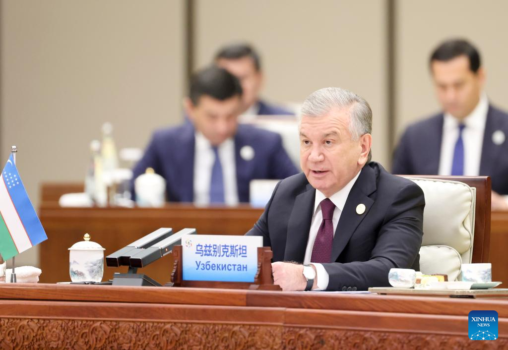Uzbek President Shavkat Mirziyoyev speaks during the first China-Central Asia Summit in Xi'an, northwest China's Shaanxi Province, May 19, 2023. The first China-Central Asia Summit was successfully concluded here Friday. (Xinhua/Ding Haitao)