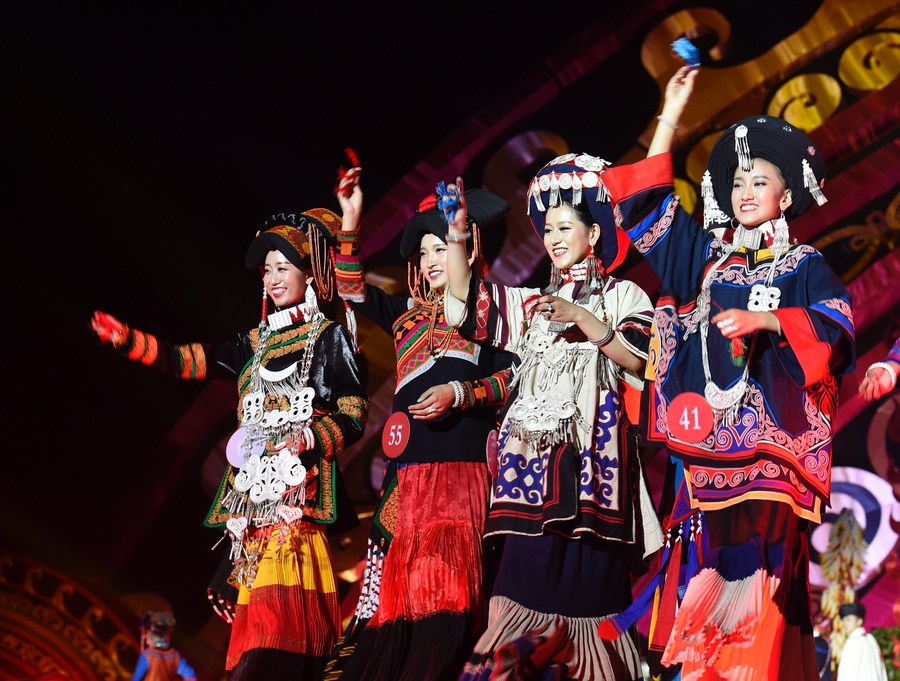 Contestants attend a costume show during a beauty contest for Yi ethnic group in Xichang, southwest China's Sichuan Province, July 28, 2016. (Xinhua/Liu Kun)