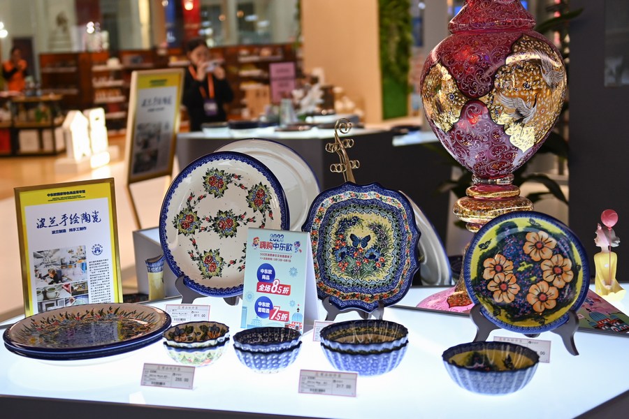 An enterprise delegate displays goods from Poland at the China-Central &Eastern European Countries (CEEC) Expo in Ningbo, east China's Zhejiang Province, May 16, 2023. (Xinhua/Huang Zongzhi)
