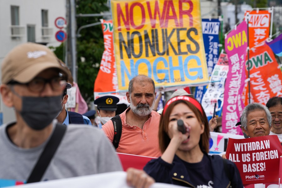 People rally in a protest against the Group of Seven (G7) summit in Hiroshima, Japan, May 20, 2023. (Xinhua/Zhang Xiaoyu)