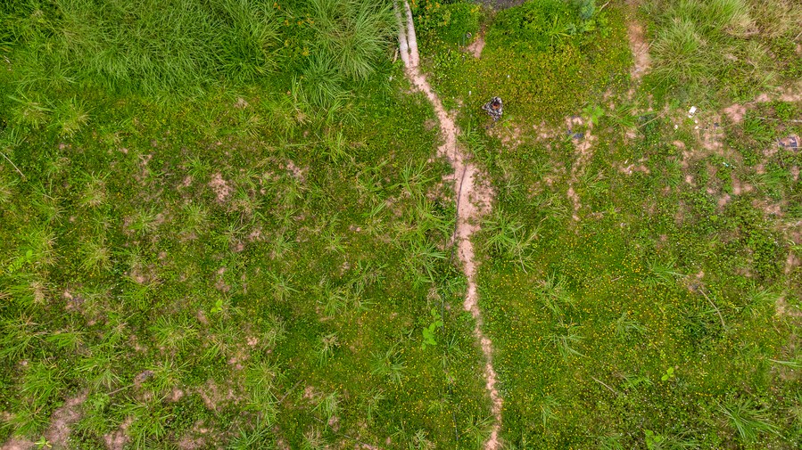This aerial photo taken on May 9, 2023 shows a field where people grow favorite food for wild elephants in Dadugang Township of Jinghong City, Dai Autonomous Prefecture of Xishuangbanna, southwest China's Yunnan Province. (Xinhua/Hu Chao)