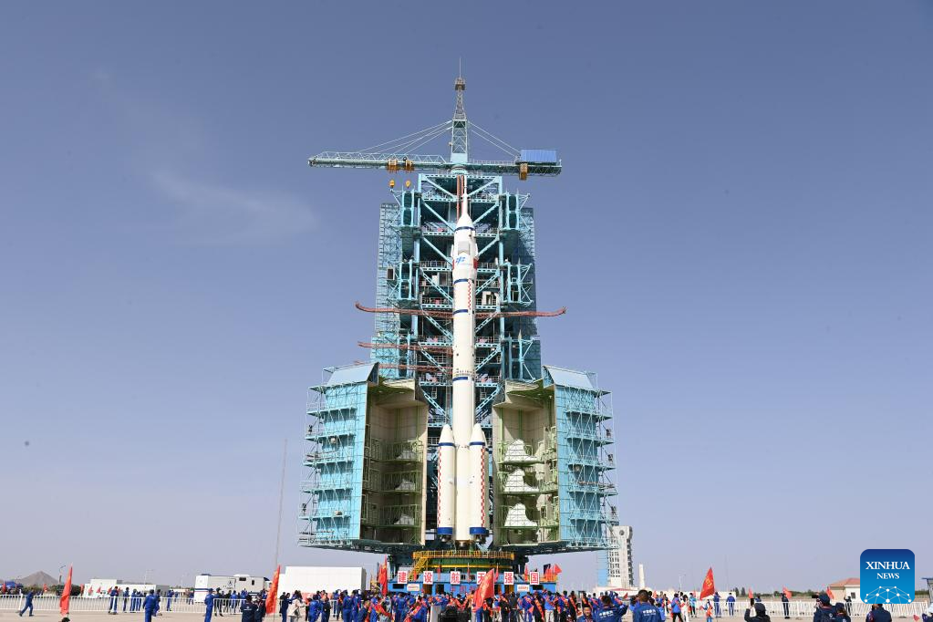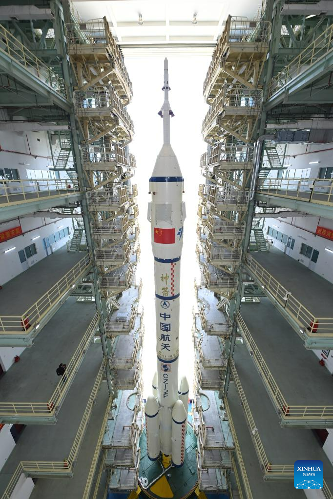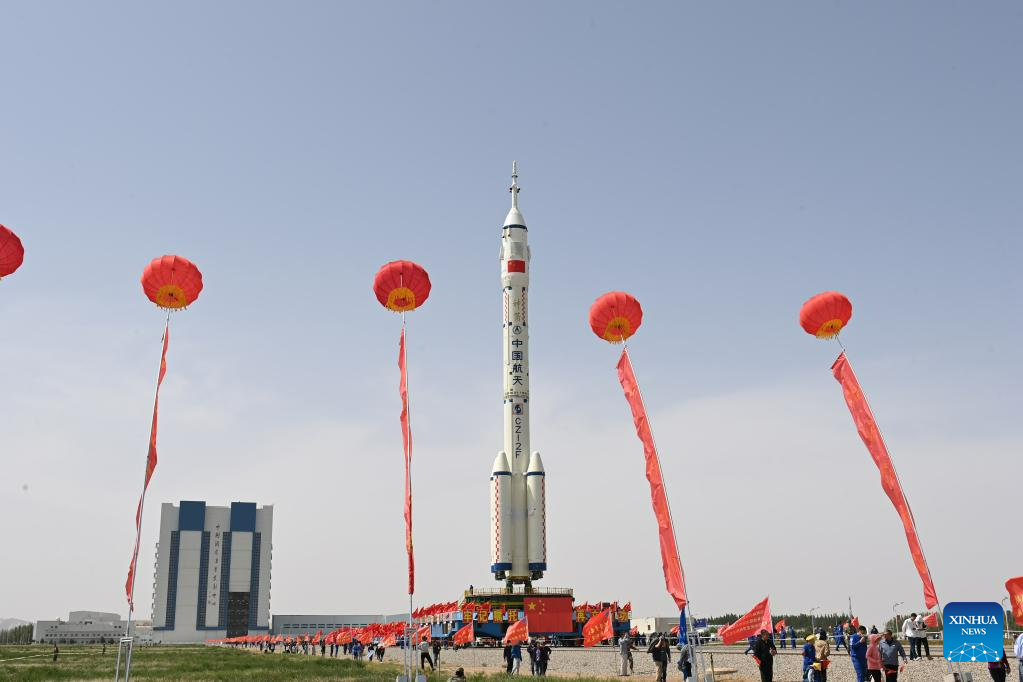 JIUQUAN, May 22 (Xinhua) -- The combination of the Shenzhou-16 crewed spaceship and a Long March-2F carrier rocket was transferred to the launching area on Monday, the China Manned Space Agency (CMSA) said.