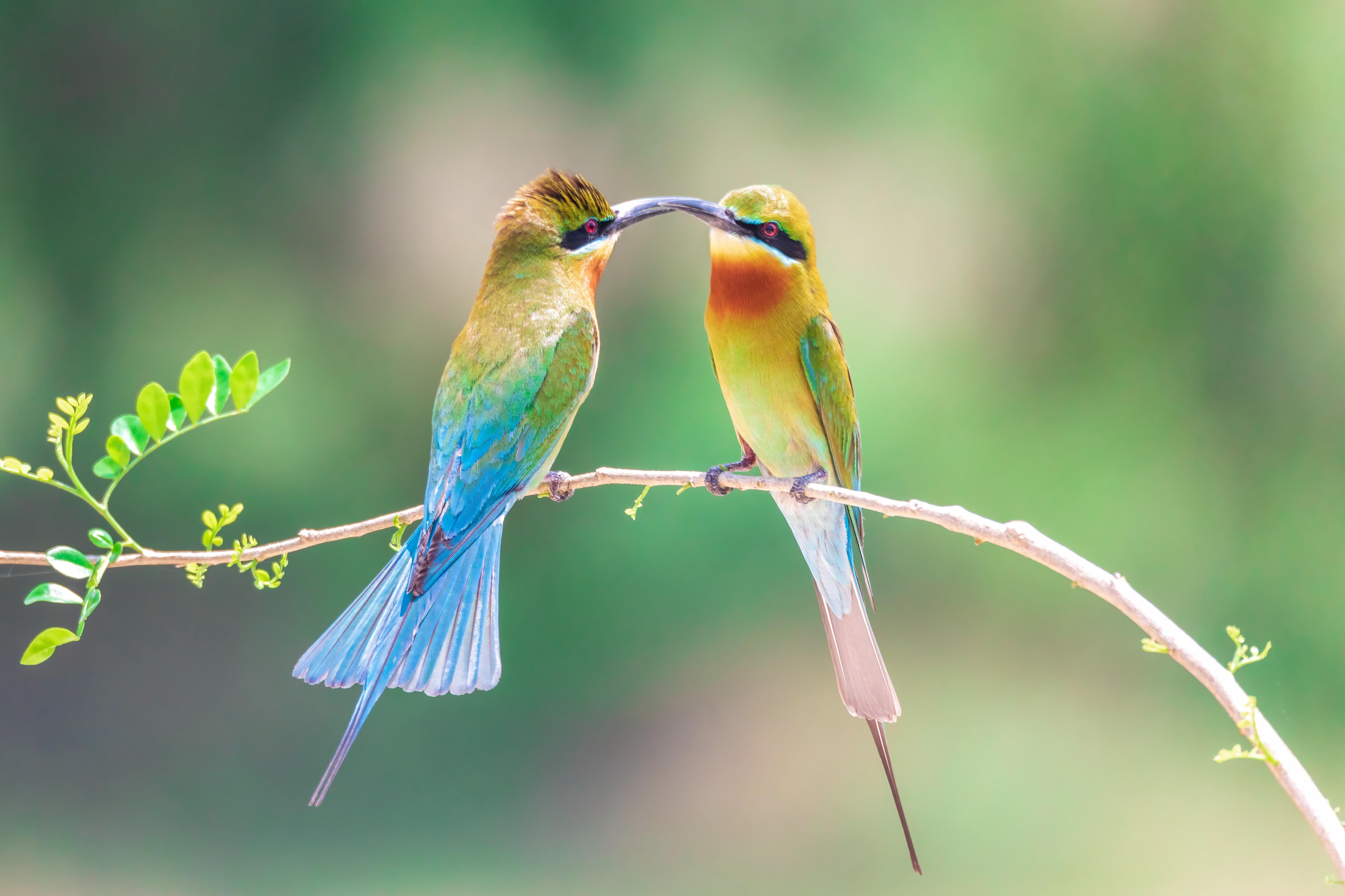 Photo shows two blue-tailed bee-eaters at a scenic spot in Caotan township, suixi county, Zhanjiang, south China’s Guangdong Province. (Photo/Lan Weiqiang)