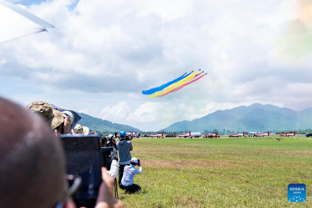 The Chinese People's Liberation Army (PLA) Air Force's August 1st aerobatics team performs at the 16th Langkawi International Maritime and Aerospace Exhibition (LIMA 2023) in Langkawi, Malaysia, May 23, 2023. (Xinhua/Zhu Wei)