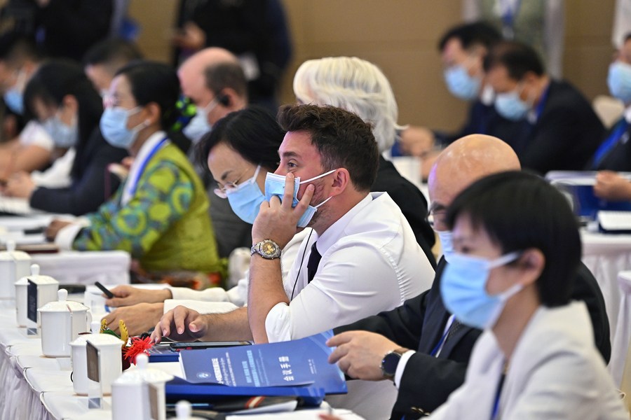Attendees listen to guests' speeches at the opening ceremony of the "2023 Forum on the Development of Xizang, China" in Beijing, capital of China, May 23, 2023. A forum on the development of Tibet was held on Tuesday in Beijing to pool wisdom for the continued development of the autonomous region in southwest China. (Xinhua/Li Xin)