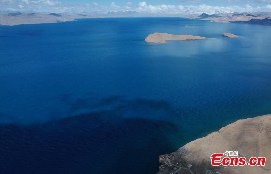 Breathtaking scenery of the Puma Yumco Lake with an altitude of about 5,000 meters in Shannan City, southwest China's Tibet Autonomous Region. Covering an area of 292 square kilometers , Puma Yumco literally means 'The Blue Jewel which is floating in the sky'. (Photo: China News Service/Li Lin)