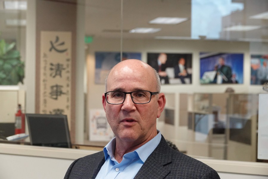 Jim Wunderman, president and CEO of the Bay Area Council (BAC), receives an interview with Xinhua in San Francisco, the United States, on March 27, 2019. (Xinhua/Wu Xiaoling)