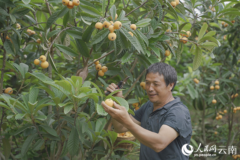 A farmer harvests loquats in Yongshan county, Zhaotong city, southwest China's Yunnan Province. (People's Daily Online/Cai Shujing)