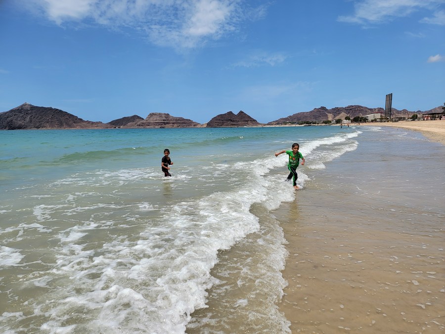 Children play on the beach to avoid power outages amid scorching summer heat in the southern port city of Aden, Yemen, on May 25, 2023. (Xinhua/Murad Abdo)