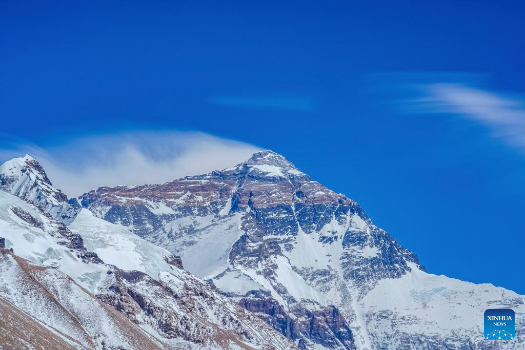 This photo taken in the afternoon of May 9, 2023 shows a view of Mount Qomolangma in southwest China's Tibet Autonomous Region. (Xinhua/Sun Fei)