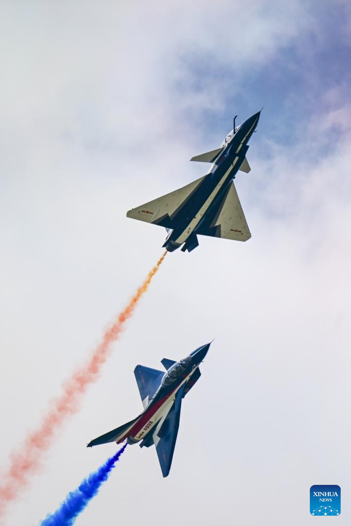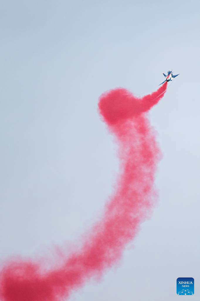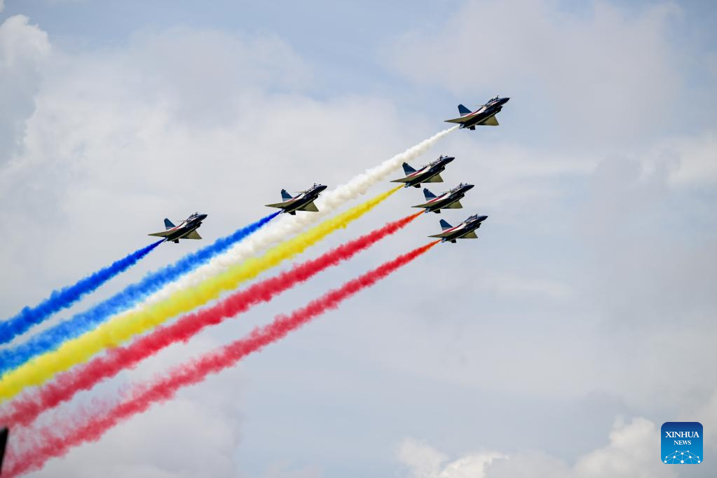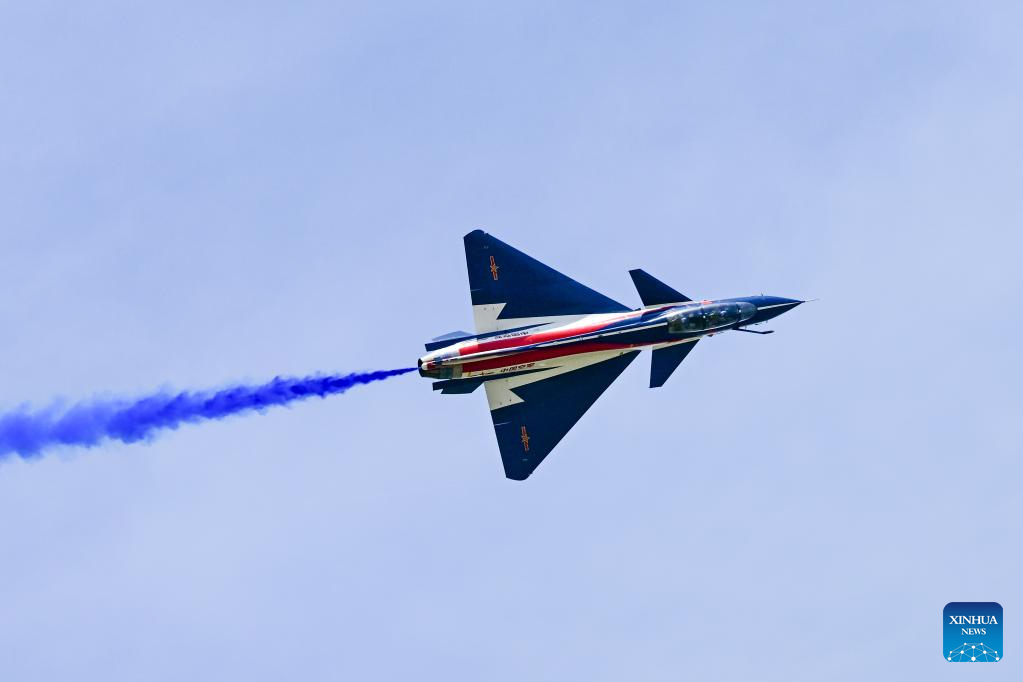 The Chinese People's Liberation Army (PLA) Air Force's August 1st aerobatics team performs at the 16th Langkawi International Maritime and Aerospace Exhibition (LIMA 2023) in Langkawi, Malaysia, May 25, 2023. (Xinhua/Zhu Wei)
