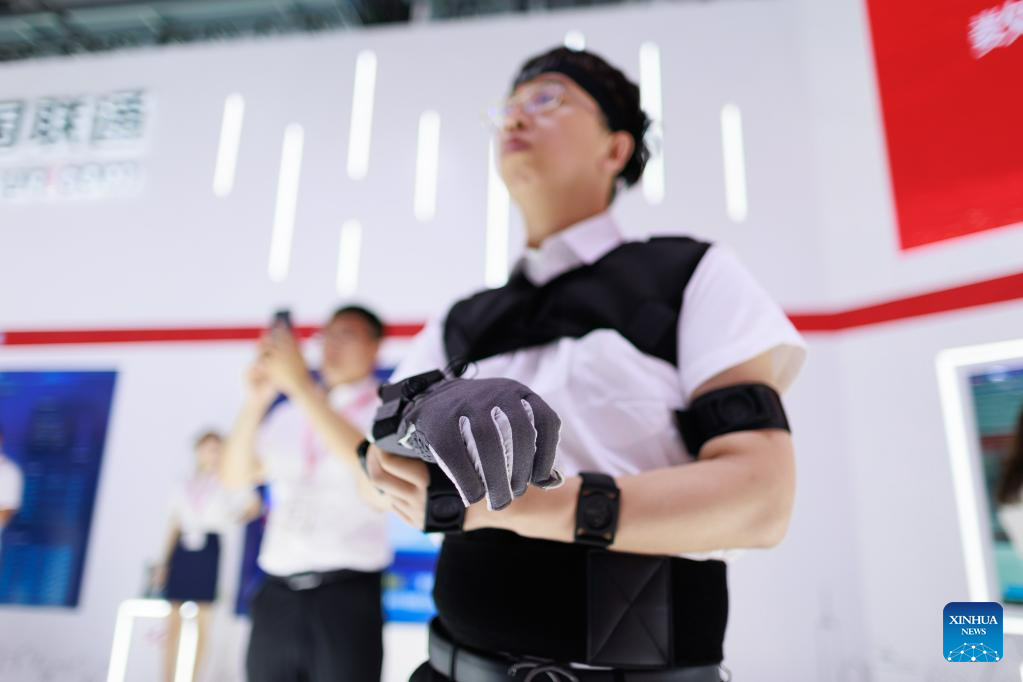 A participant experiences "5G+Smart Healthcare" system at the China International Big Data Industry Expo 2023 in Guiyang, southwest China's Guizhou Province, May 26, 2023. The China International Big Data Industry Expo 2023 kicked off on Friday in Guiyang, showcasing the country's latest achievements in the big data industry and promoting relevant business exchanges. (Xinhua/Liu Xu)