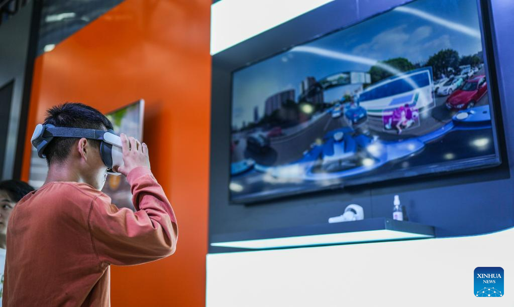 A visitor experiences unmanned driving via VR at the China International Big Data Industry Expo 2023 in Guiyang, capital of southwest China's Guizhou Province, May 26, 2023. The China International Big Data Industry Expo 2023 kicked off on Friday in Guiyang, showcasing the country's latest achievements in the big data industry and promoting relevant business exchanges. (Xinhua/Tao Liang)