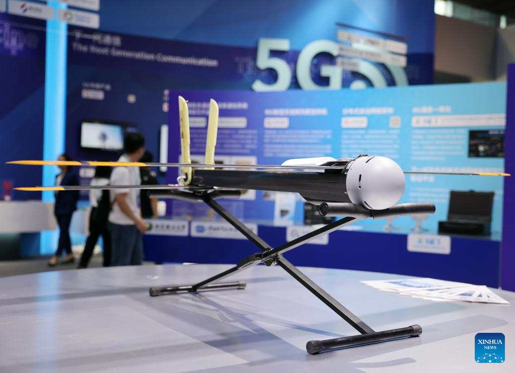 This photo taken on May 26, 2023 shows a drone with emergency broadcasting equipment at the exhibition center of Zhongguancun National Independent Innovation Demonstration Zone in Beijing, capital of China. At the exhibition area of this year's Zhongguancun Forum (ZGC Forum), a myriad of intelligent technological products and applications are shaping a promising vision of future life for people from across the globe. (Xinhua/Zhang Chenlin)