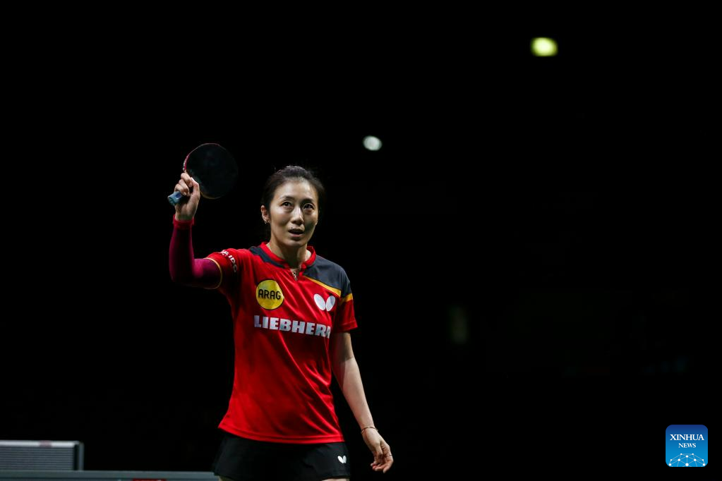 Han Ying of Germany hits a return during the women's singles quarterfinal against Sun Yingsha of China at 2023 ITTF Table Tennis World Championships Finals in Durban, South Africa, May 26, 2023. (Xinhua/Zhang Yudong)